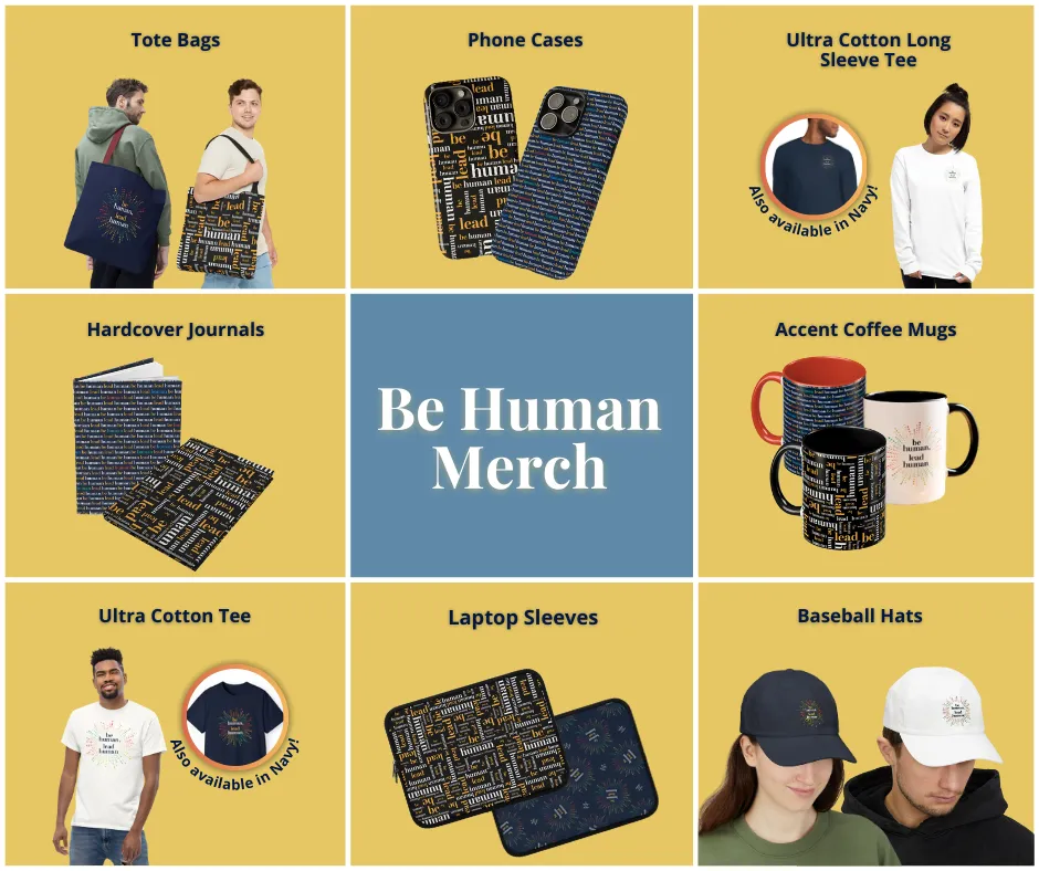 Be Human Merch lets you carry the message of human-centered leadership with style. Wear it, share it, and inspire others to lead with heart.